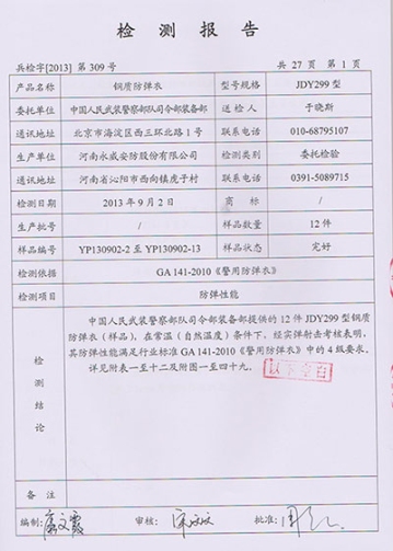 GA141-2010《警用防弹衣》Q/ZS011-2003《防弹衣》 |